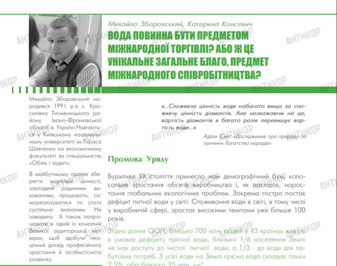 У 2011 році студент Михайло Зборовський, який навчався за спеціальністю «Облік і аудит», мріяв «зберегти моральні цінності, закладені родинним вихованням», а також «попрацювати в одній з компаній Великої аудиторської четвірки». Про це нинішній казиновець написав у біографічній довідці до своєї статті «Вода повинна стати предметом міжнародної торгівлі? Або ж це унікальне загальне благо, предмет міжнародного співробітництва?». Стаття вийшла у брошурі в рамках проєкту «Зберігаючи енергію – зберігаємо майбутнє» Програми прикордонного співробітництва ЄІСП Угорщина-Словаччина-Румунія-Україна.