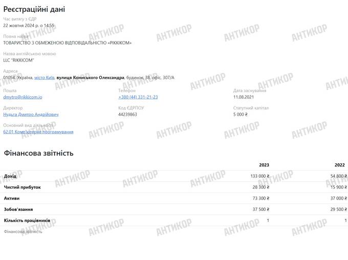 Третя фірма – Rikkicom, в якій, за офіційною версією, працював Михайло Зборовський, трохи більш відома. Як стверджується на офіційному сайті, її клієнтами є торговельна мережа Novus, заправки OKKO й онлайн-казино Parimatch, яке перебуває під санкціями Ради національної безпеки та оборони. І це єдине, що Зборовського пов’язувало з гральним бізнесом до 2023 року, коли він став бенефіціаром фірми «Нейролінк», що володіє ліцензією онлайн-казино Cosmobet. Проте й у Rikkicom він навряд чи зміг різко розбагатіти. Згідно з фінансовими показниками, ця фірма в 2023 році отримала дохід всього 133 000 гривень.