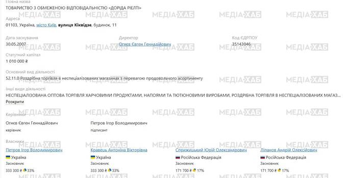 Але паспорт — це ще не все. Точніше — далеко не все, що пов’язує Андрія Матюху з Російською Федерацією. Одним з давніх напрямків критики Матюхи став його зв’язок з громадянами РФ через компанію ТОВ «Доріда Ріелті». Станом на серпень 2025 року його партнерами там числилися росіяни Юрій Сприжицький і Андрій Ліпанов. Фірма продовжує працювати, а вихід Матюхи з числа бенефіціарів експерти називають «питанням більше формальним, ніж фактичним». Слід, мабуть, підкреслити — ТОВ «Доріда Ріелті» зареєстрована в Україні і працює там же. Незважаючи на офіційну присутність серед власників двох громадян РФ. Йдеться про 2025 рік, якщо хтось не зрозумів.