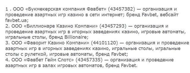 На ці попередження ніхто, звісно ж, не звернув уваги, і закон було прийнято. Однією з перших ліцензію на проведення азартних ігор отримала компанія «Фавбет», власником якої, згідно з реєстрами, є Андрій Матюха.