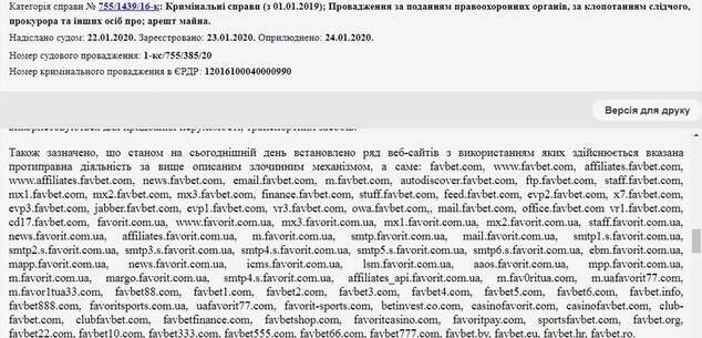 Ще один слід – кримінальне провадження № 12016100040000990 щодо ТОВ «Лакі ленд» про фінансування тероризму, відкрите у 2019 році. Серед інших співучасників там присутній і FavBet.
