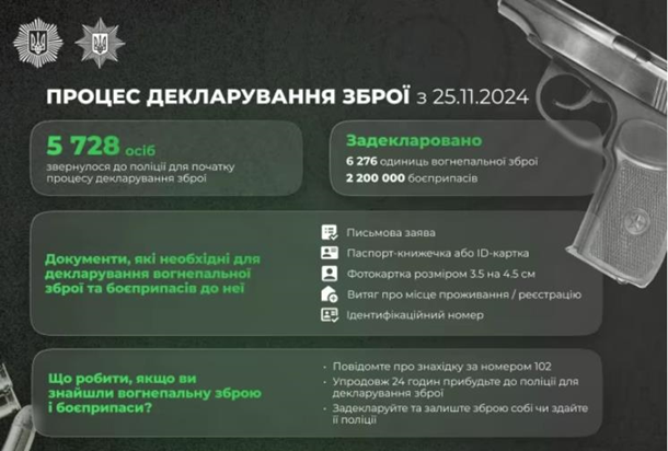 Задекларувати знайдену вогнепальну зброю можна у підрозділах Нацполіції. Наразі налічується 216 місць проведення декларування/груп з декларування.